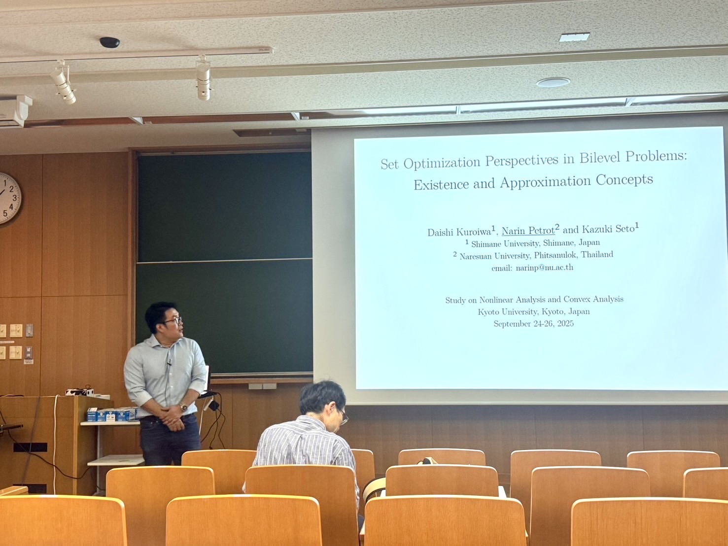Beyond their participation, CaRe was honored with invitations as invited speakers on September 24, 2025. Prof. Dr. Poom Kumam delivered a lecture on “Convexity in Iterative Techniques for Optimization in Nonlinear Spaces”, while Prof. Dr. Narin Petrot presented on “Set Optimization Perspectives in Bilevel Problems: Existence and Approximation Concepts.” This recognition highlights CaRe’s contribution to advancing mathematical research on a global stage.