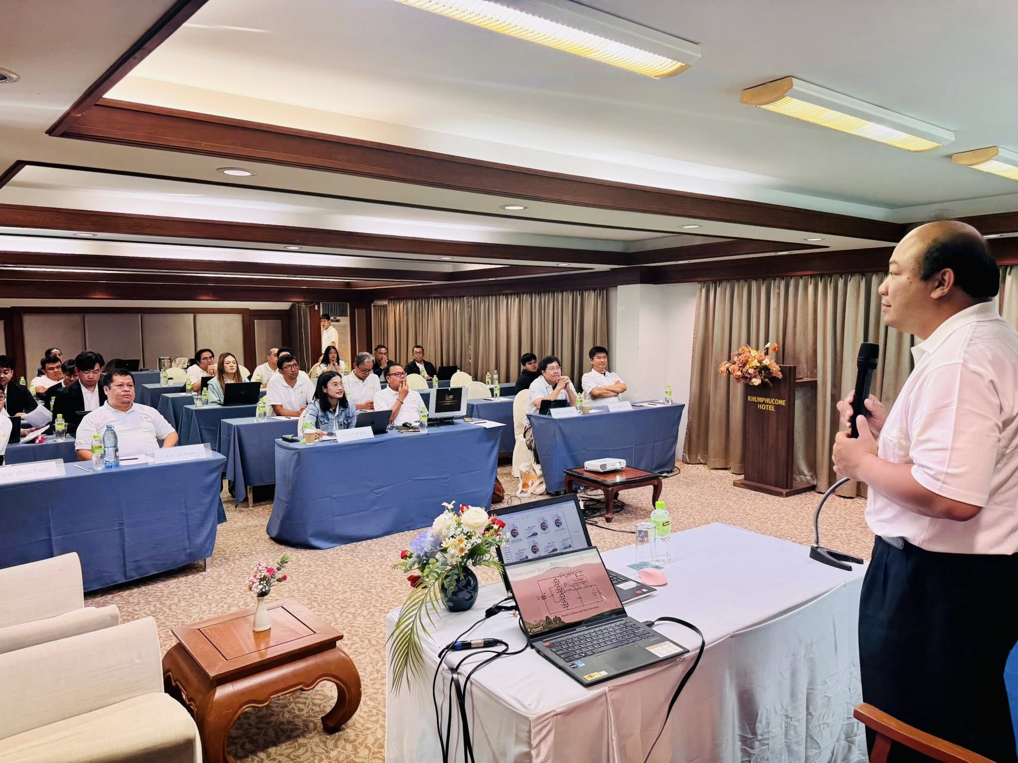 The keynote lecture was delivered by Prof. Dr. Phatiphat Thounthong, covering key topics such as Hamiltonian Control Law, Model Predictive Control, Model-Free Control, and their applications in fuel cell, supercapacitor, and battery systems, as well as DC microgrids, power electronics, power-to-hydrogen technologies, and wireless power transfer. The conference was supported by leading national and international organizations, including NRCT, IEEE, KMUTNB, KMITL, KMUTT, Kasetsart University, Université de Lorraine, RERC, and the CaRe Network. Alongside academic lectures, the program featured research presentations, system demonstrations, and strategic discussions to strengthen research collaboration, human resource development, and the translation of research outcomes into real-world and international publications (Scopus/IEEE), marking another important milestone in advancing Thailand’s energy and advanced control research ecosystem.